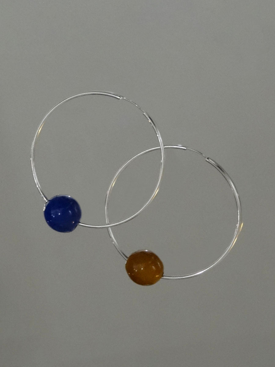 Sterling silver hoop earrings with two coloured glass bead.