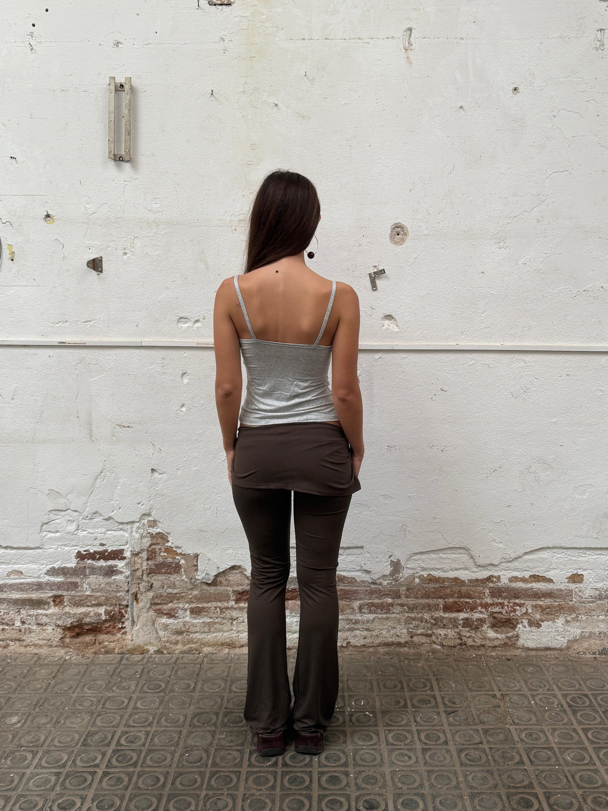 Low-rise yoga pants. Featuring draped twist on right waist. Wide bottom.